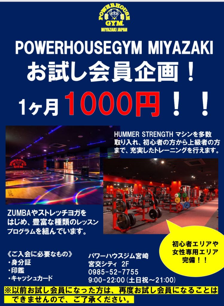11月いっぱい1000円にて1ヶ月間パワーハウスジムをお試しいただけます。