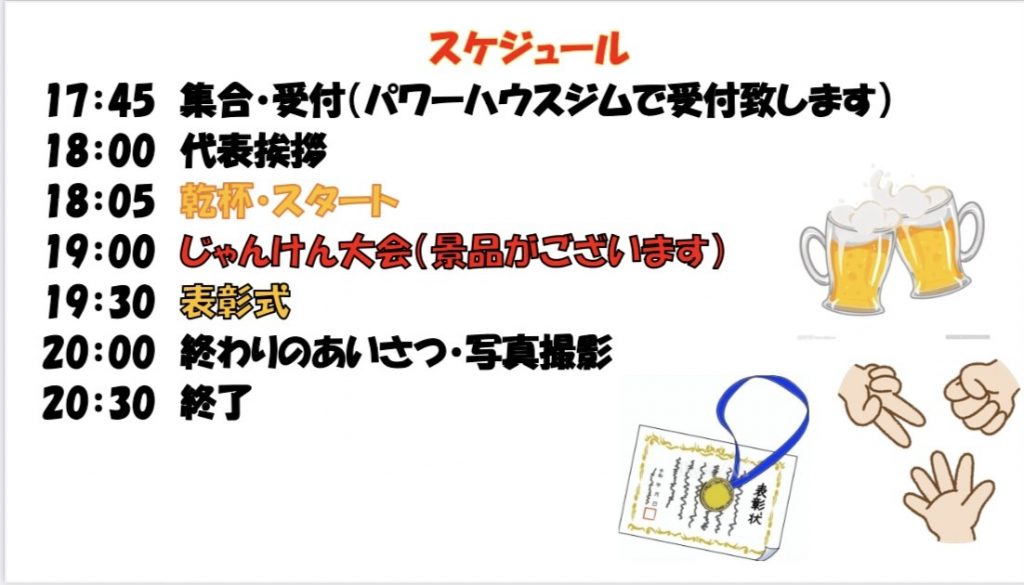 ・オードブル・表彰式・じゃんけん大会(景品プレゼント)