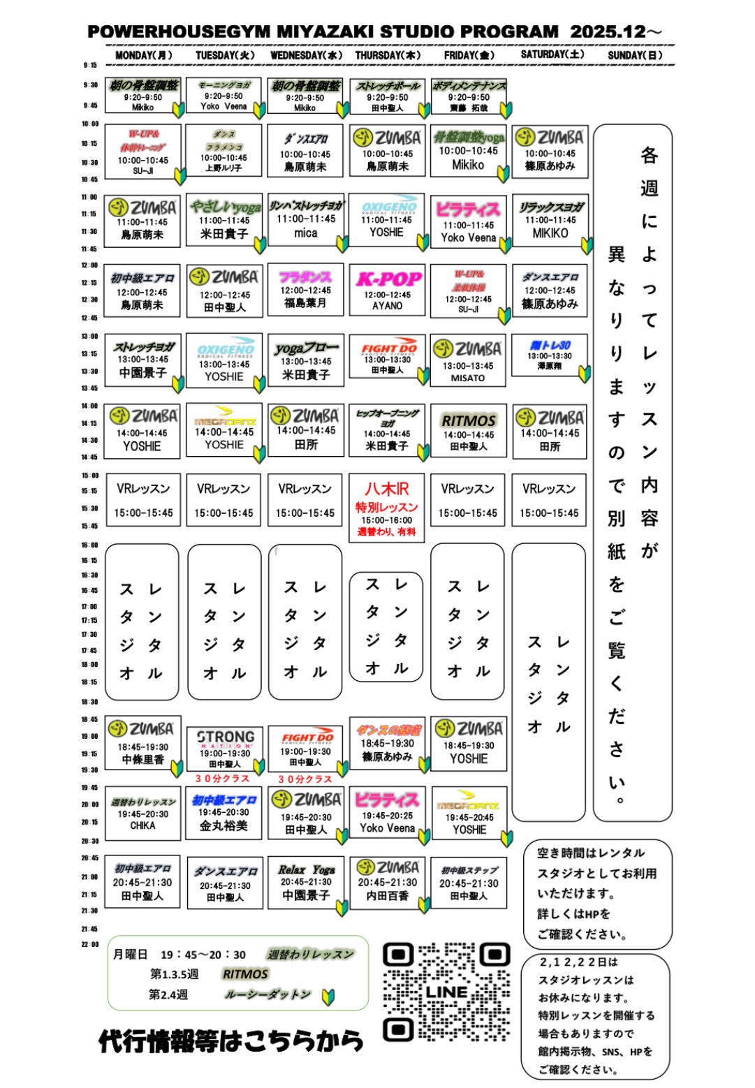 スタジオの雰囲気に触れつつ、場所・設備・レッスンの種類、ルールや予約方法等にについて説明いたします